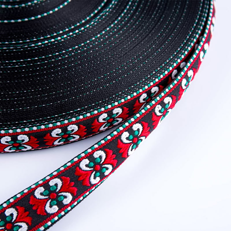 พ.ศV:สายรัด Jacquard ไนลอนเลียนแบบ 4.2 ซม. สำหรับเครื่องประดับหมวกรองเท้าเครื่องแต่งกายถัดไป:สายรัด Jacquard โพลีเอสเตอร์ทนต่อการสึกหรอ 1.0 ซม ริบบิ้น jacquard สไตล์ชาติพันธุ์ขนาด 2.5 ซม. ถูกนำมาใช้กันอย่างแพร่หลายในเสื้อผ้า กระเป๋า ของตกแต่งบ้าน อุปกรณ์เสริม งานฝีมือ DIY และสาขาอื่น ๆ การใช้งานฝีมือแจ็คการ์ด การออกแบบลวดลายที่ควบคุมด้วยคอมพิวเตอร์ และการทอเส้นด้ายสีต่างๆ เข้าด้วยกัน ทำให้เกิดลวดลายสามมิติที่เรียบเนียนพร้อมคุณภาพทางศิลปะและการตกแต่งที่โดดเด่น